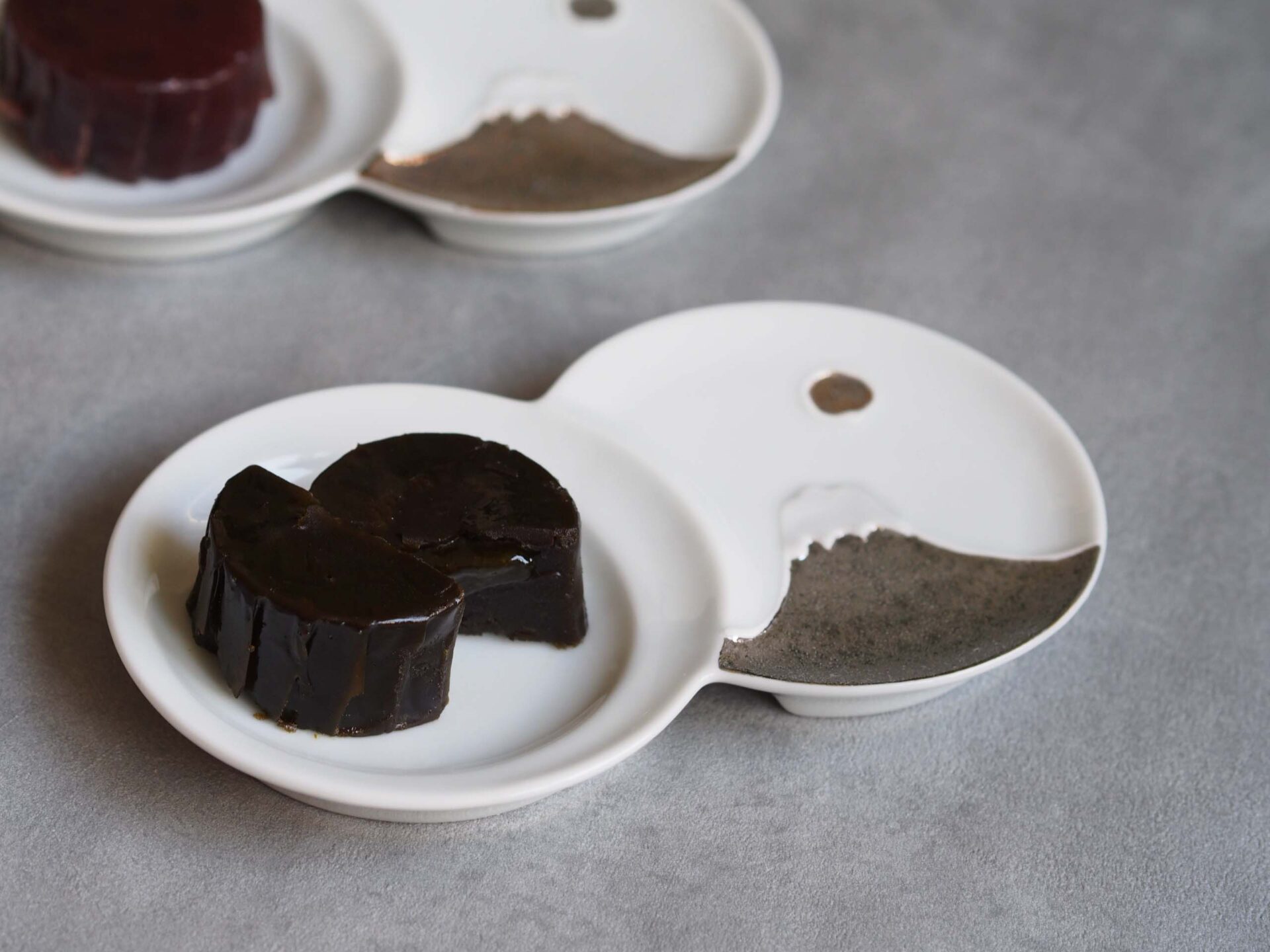 片側に和菓子をのせて完成するところも素敵なシリーズのお皿です。