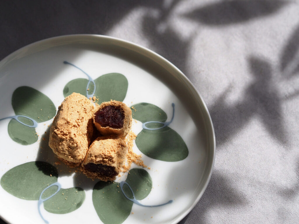 上品な甘さの粒あんを包むもちもちのの求肥。たっぷりのきな粉をまぶし風味ゆたかに仕上げました。