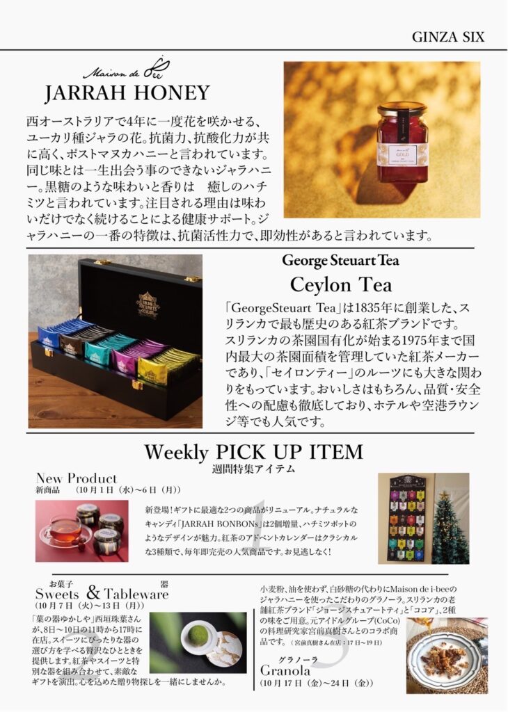 ♦会場 東京都中央区銀座6丁目10-1 銀座SIX B2F HONEY with Tee &